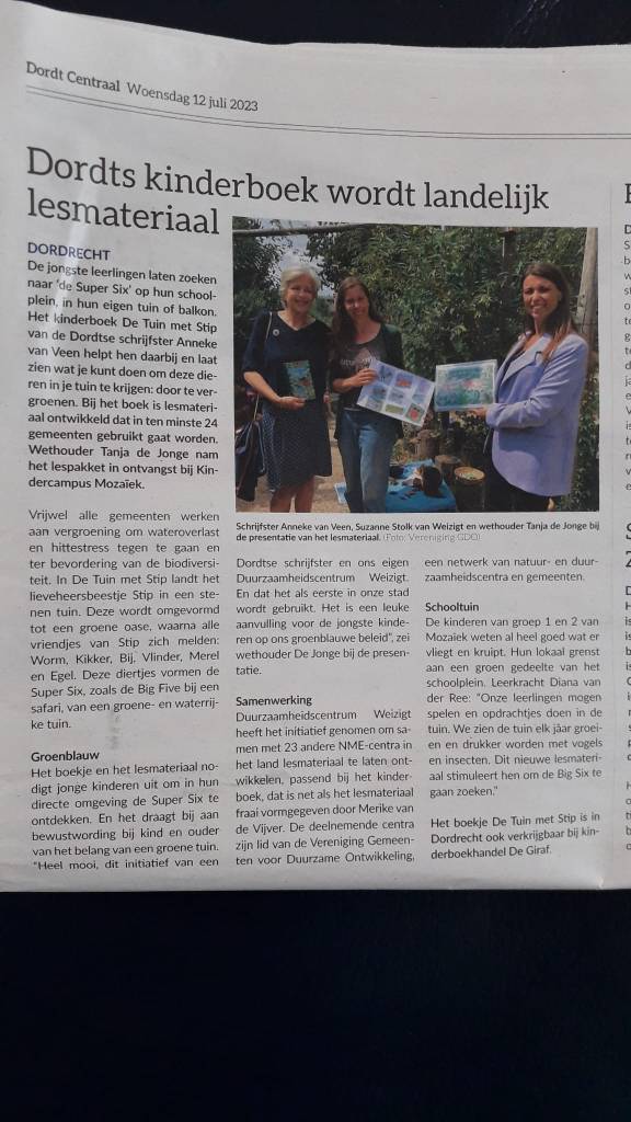 Op basis van ons boekje De Tuin met Stip is lesmateriaal ontwikkeld. Deze wordt aan scholen beschikbaar gesteld in 40 gemeenten !!!!